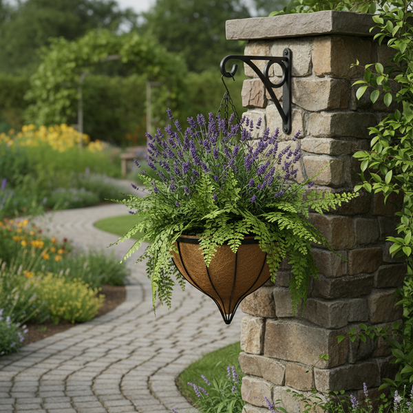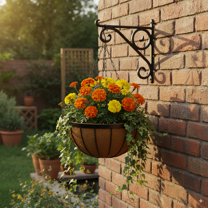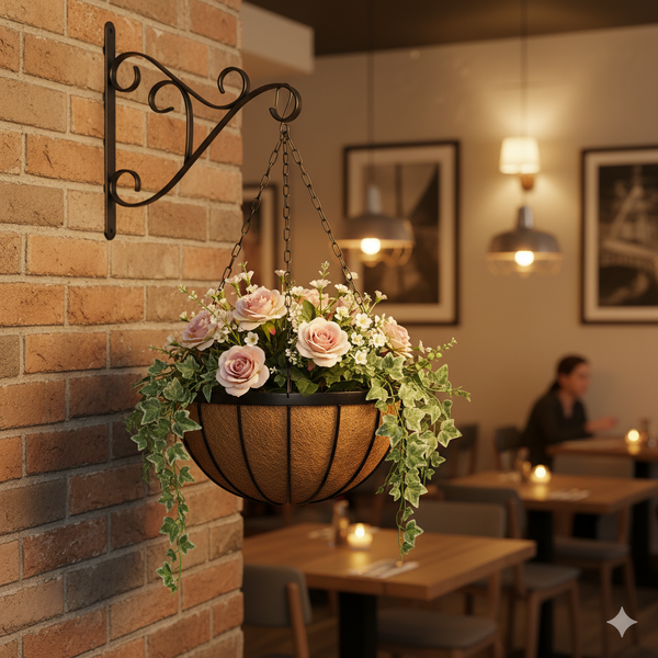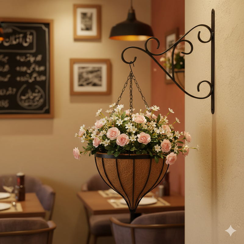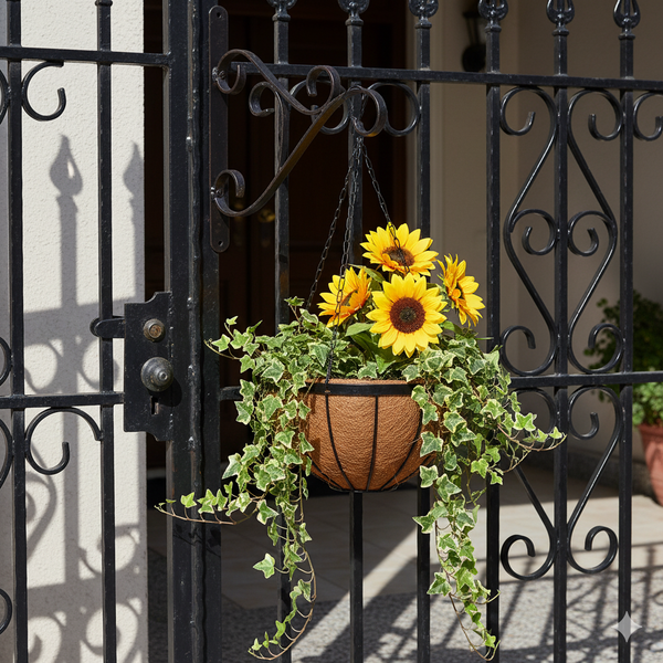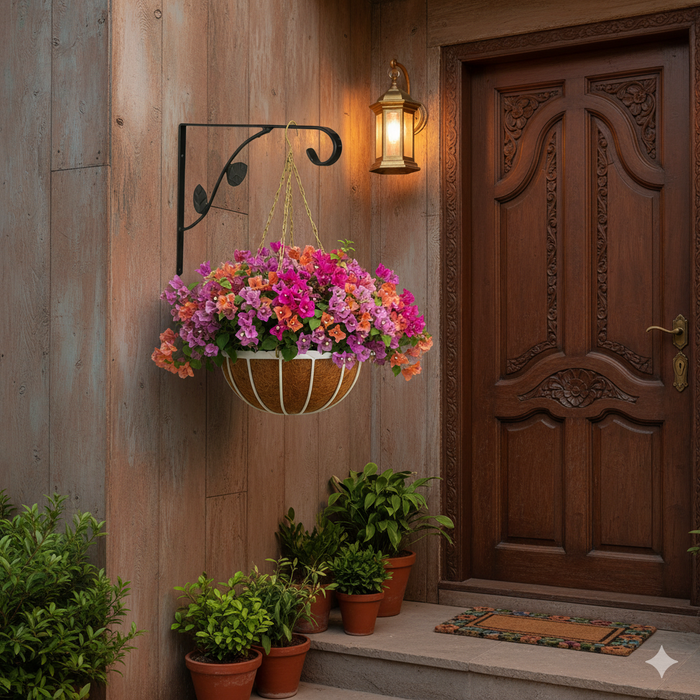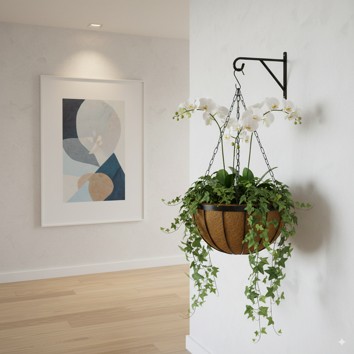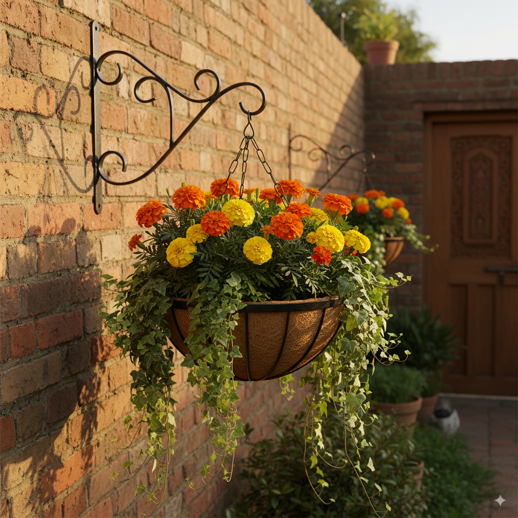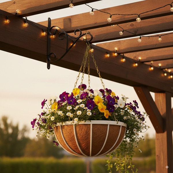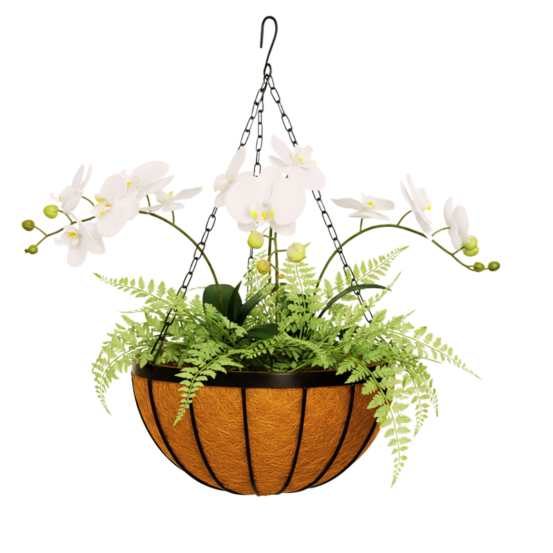 Powder-coated iron frame with a handmade coco liner. Strong, rust-resistant, and built to showcase your plants beautifully.